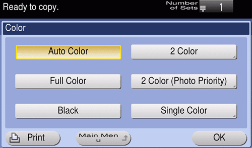 [Auto Color] | Automatically selects [Full Color] or [Black] to suit the color of the scanned original when copying. |