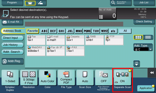 If the number of original sheets is so large that they cannot be loaded into the ADF at the same time, you can load them in several batches and handle them as one job. You can also scan the original using both ADF and Original Glass alternately.