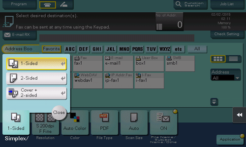 [Cover + 2-sided] | Scans only one side for the first page in the original, and scan both sides of the remaining pages. |