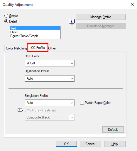 In [Paper Type] in the [Basic] tab, select the type of paper for printing.