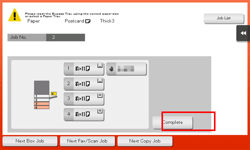 For example, by using the print command once, you can print a submission document on high-quality color paper loaded in Tray 1 and print your copy on recycled paper loaded in Tray 2.