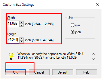 Specify the length and width as desired, and click [OK].