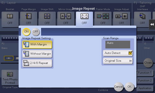 [ON]/[OFF] | Select [ON] to specify Image Repeat. |